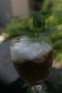 הקצפת כאן איננה מתוקה, אך כשאוכלים אותה ביחד עם השוקולד מתקבל מעדן.