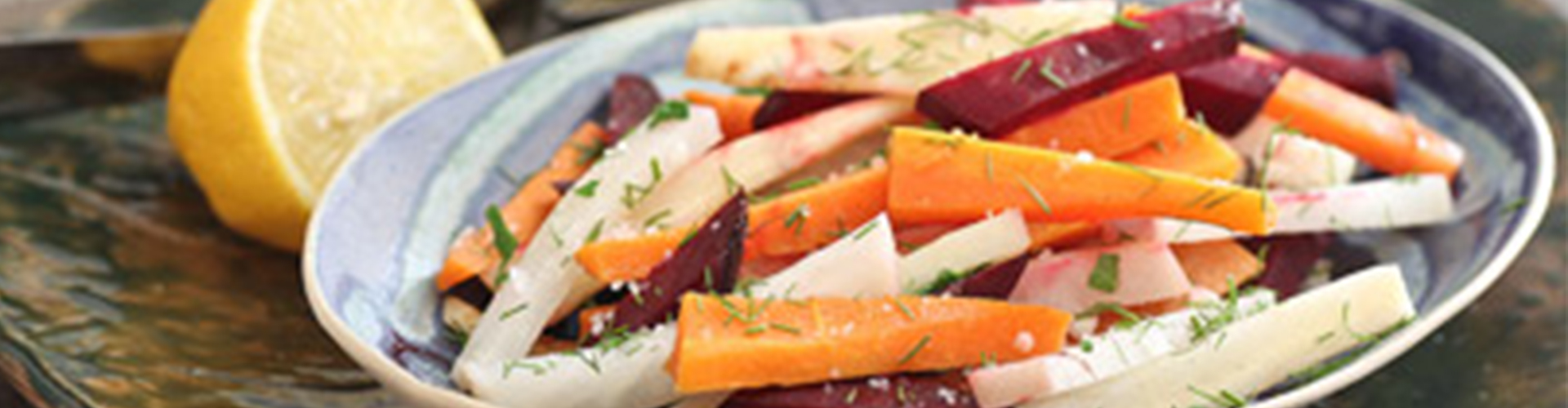 - חותכים את ירקות השורש לרצועות ומאדים על רשת אידוי מעל למים רותחים עד שהירקות מתרככים.
